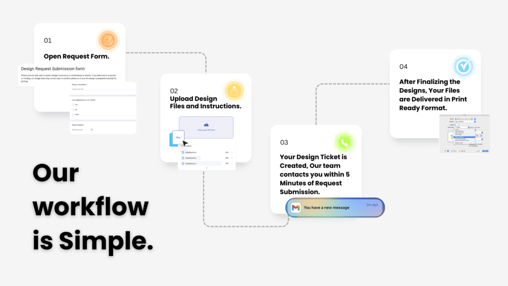 Our designers understand printing, not just design software. Give your clients unlimited print designs without hiring in-house. Get a professional designer who handles all your client’s print materials behind the curtain, on demand.